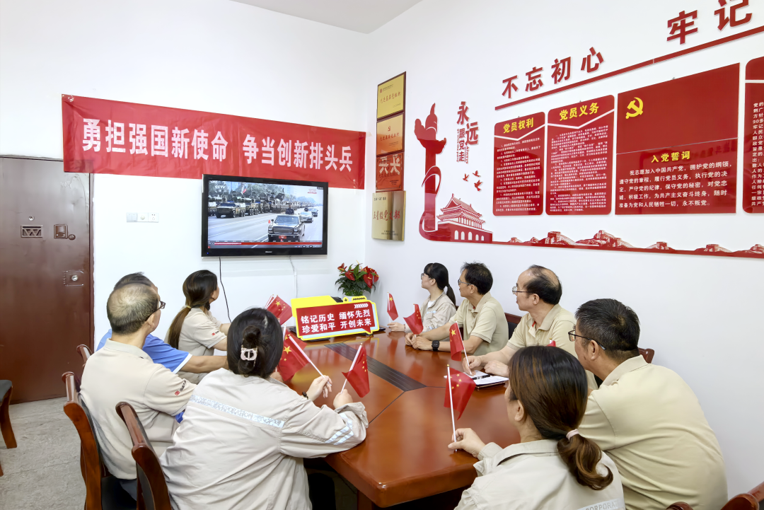 科研總院組織系統(tǒng)職工集中觀看九三閱兵直播。