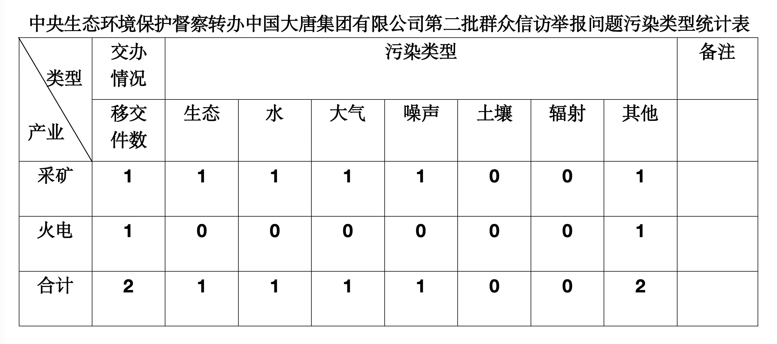 2025年6月4日,中央第七生態(tài)環(huán)境保護督察組向中國大唐集團有限公司移交第二批群眾信訪舉報件,共計2件,來電舉報和來信舉報各1件,涉及生態(tài)問題1個、水問題1個、大氣問題1個、噪聲問題1個、其他問題2個。所有舉報件辦理工作已第一時間進入調查核實辦理程序,辦理情況將按照相關要求反饋督察組,并及時向社會公開。