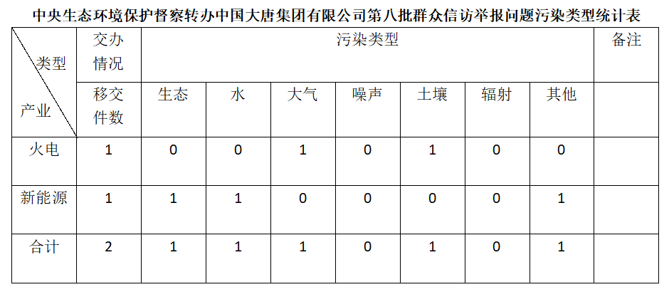 中央第七生態(tài)環(huán)境保護(hù)督察組向中國(guó)大唐集團(tuán)有限公司轉(zhuǎn)辦第八批群眾信訪舉報(bào)件