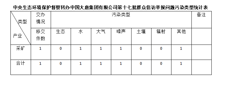 2025年6月25日,中央第七生態(tài)環(huán)境保護(hù)督察組向中國大唐集團(tuán)有限公司移交第十七批群眾信訪舉報件,共計(jì)1件,為來電舉報1件,涉及水問題1個、大氣問題1個、噪聲問題1個、其他問題1個。所有舉報件辦理工作已第一時間進(jìn)入調(diào)查核實(shí)辦理程序,辦理情況將按照相關(guān)要求反饋督察組,并及時向社會公開。