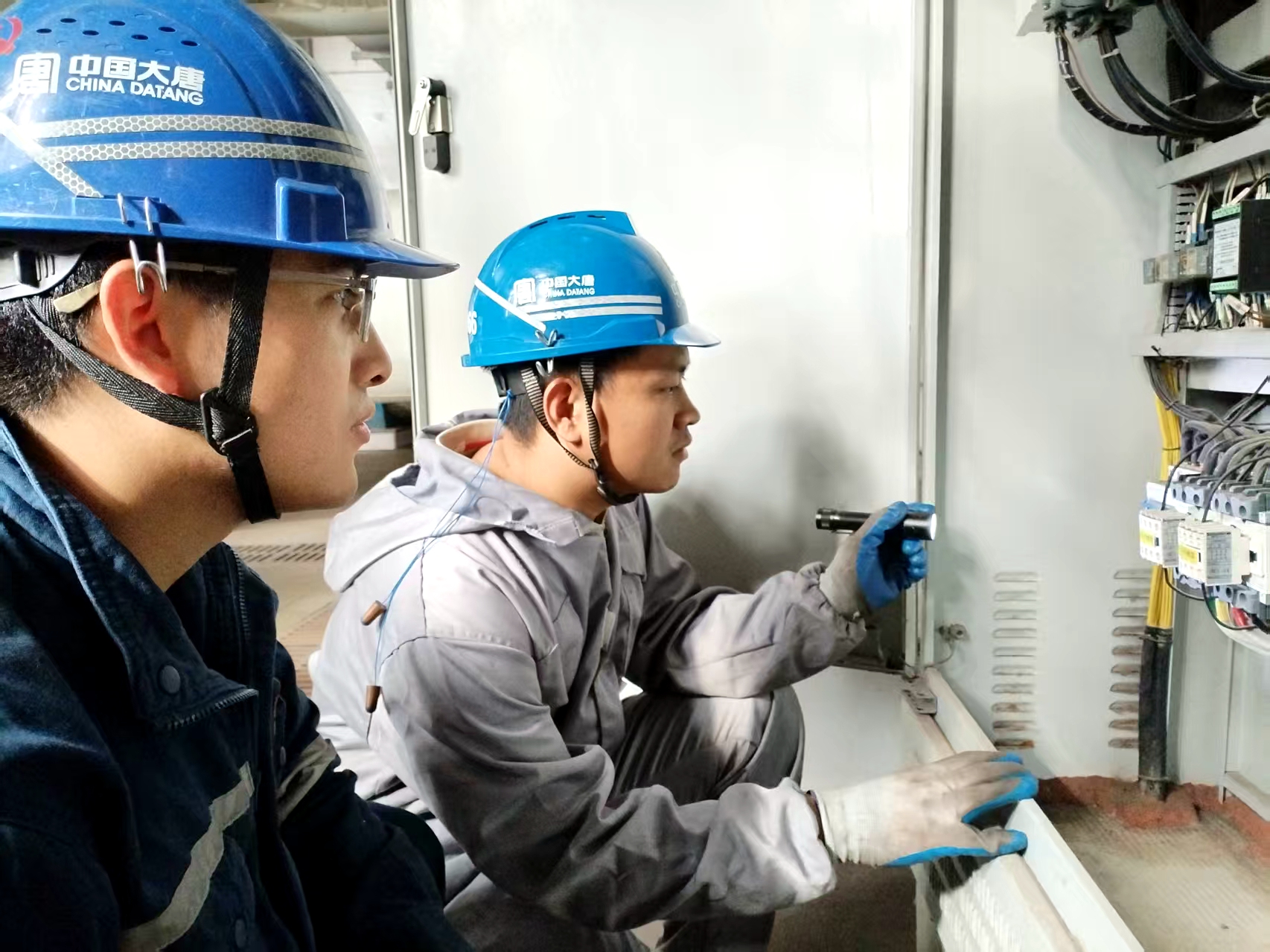 天邊烏云彌漫,雨還在一直下個不停。一行人深一腳淺一腳?過周邊的泥濘,抵達中水泵控制箱處。雨絲鞭打著電氣班長小管沉穩(wěn)的面龐,他鉆在防雨棚下,借著手電的光,仔細地查看著控制柜內的情況。