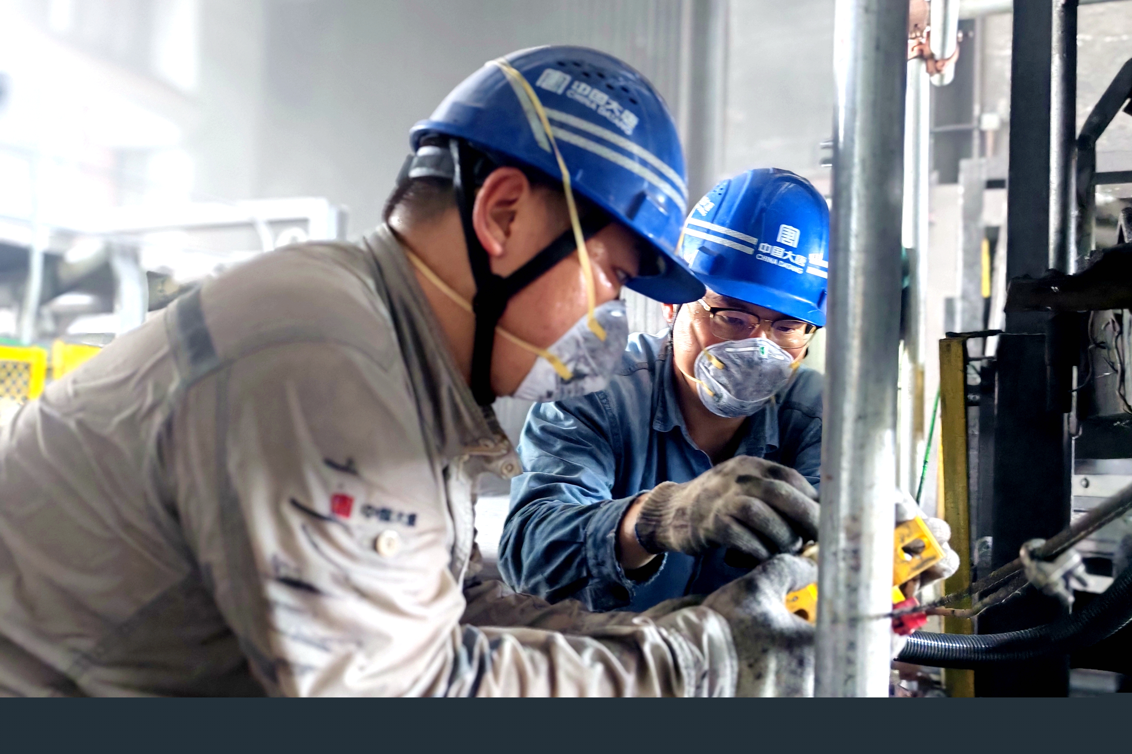 筒倉底部悶熱異常,輔控班全員早已汗流浹背。張海峰熟練地操作角磨機(jī),拆除舊電纜,防護(hù)服上沾滿了粉塵;未紀(jì)牢一趟趟扛著沉重的鍍鋅管在狹窄空間里穿梭,工裝后背凝結(jié)出鹽霜;關(guān)興昆鉆入低矮的皮帶架下,用沖擊鉆打孔、固定管卡,任憑汗水從臉頰滑落。