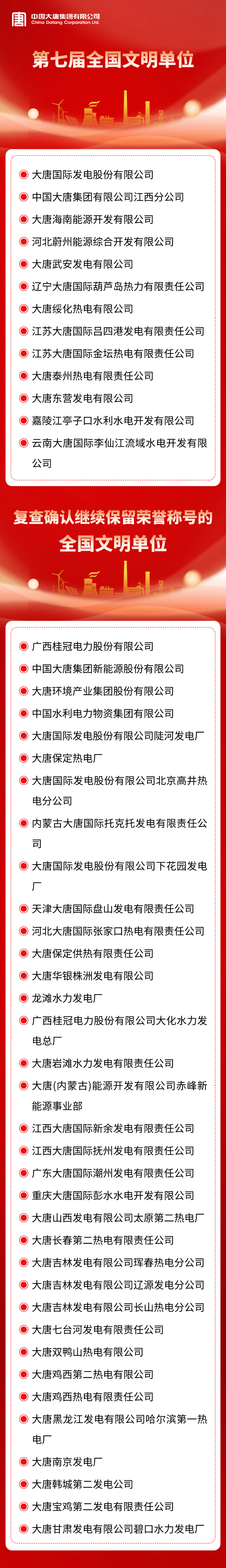 本網(wǎng)訊 5月23日,中國(guó)文明網(wǎng)公布第七屆全國(guó)文明單位名單,中國(guó)大唐系統(tǒng)13家單位入選,35家單位通過復(fù)查共計(jì)48家。