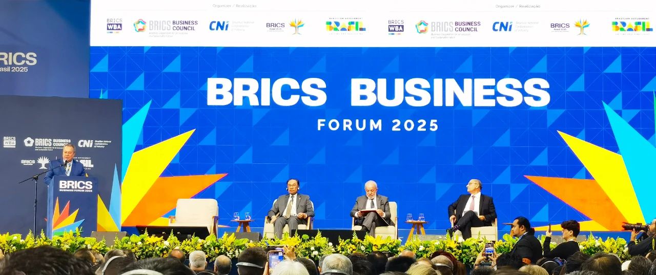 本網(wǎng)訊 7月5日,2025年金磚國(guó)家工商論壇在巴西里約熱內(nèi)盧舉行。論壇圍繞推動(dòng)“大金磚合作”,就金磚國(guó)家經(jīng)濟(jì)可持續(xù)發(fā)展、糧食安全、能源轉(zhuǎn)型、數(shù)字經(jīng)濟(jì)等一系列議題進(jìn)行討論。巴西總統(tǒng)盧拉出席開(kāi)幕式并致辭,來(lái)自金磚國(guó)家的政府官員、企業(yè)代表、學(xué)者、智庫(kù)專家和國(guó)際組織代表參會(huì)。金磚國(guó)家工商理事會(huì)中方理事,中國(guó)大唐集團(tuán)有限公司黨組書(shū)記、董事長(zhǎng)呂軍受邀出席論壇開(kāi)幕式,以及金磚國(guó)家工商理事會(huì)年度會(huì)議、金磚國(guó)家工商理事會(huì)中方理事會(huì)會(huì)議等相關(guān)活動(dòng),并與巴西國(guó)家電力公司執(zhí)行副總裁羅布森·坎波斯舉行會(huì)談。