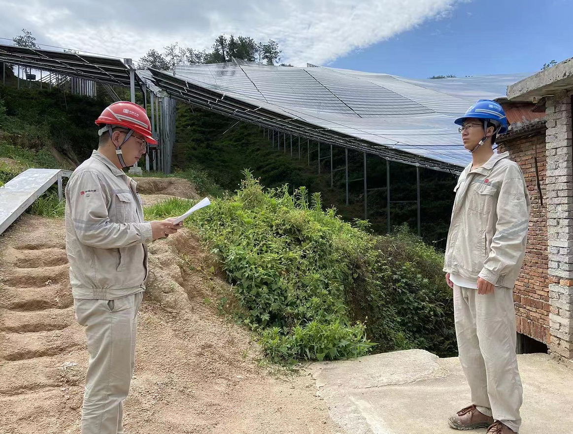 在馮剛帶領(lǐng)下,項(xiàng)目部成員大膽假設(shè),多方論證,決定使用柔性支架安裝方式,為山地光伏建設(shè)提供新方案、新思路。