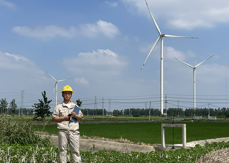 去年夏天,我離開(kāi)校園,走進(jìn)射陽(yáng)風(fēng)電場(chǎng),看三枚葉片在藍(lán)天與白云間緩慢而有力地?fù)]舞,腦海中突然閃過(guò)一句話:留下“綠水青山”,帶來(lái)“金山銀山”——是的,我成了一名電力人,從此不再是遠(yuǎn)觀風(fēng)車的游人。