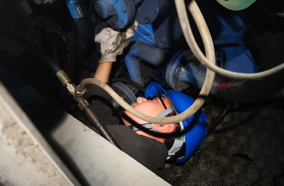 現(xiàn)場(chǎng)人員在檢查齒輪箱(龐延堃/攝)