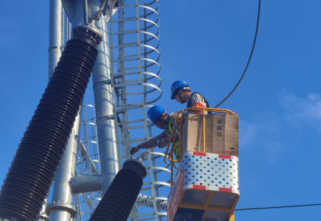等升降車將兩人慢慢送至空中,沈啟超有些緊張,不由得口中有些干燥,他腦海中反復(fù)回憶著工作前安全專責(zé)和班長交代的工作流程和注意事項,定了定神開始工作。