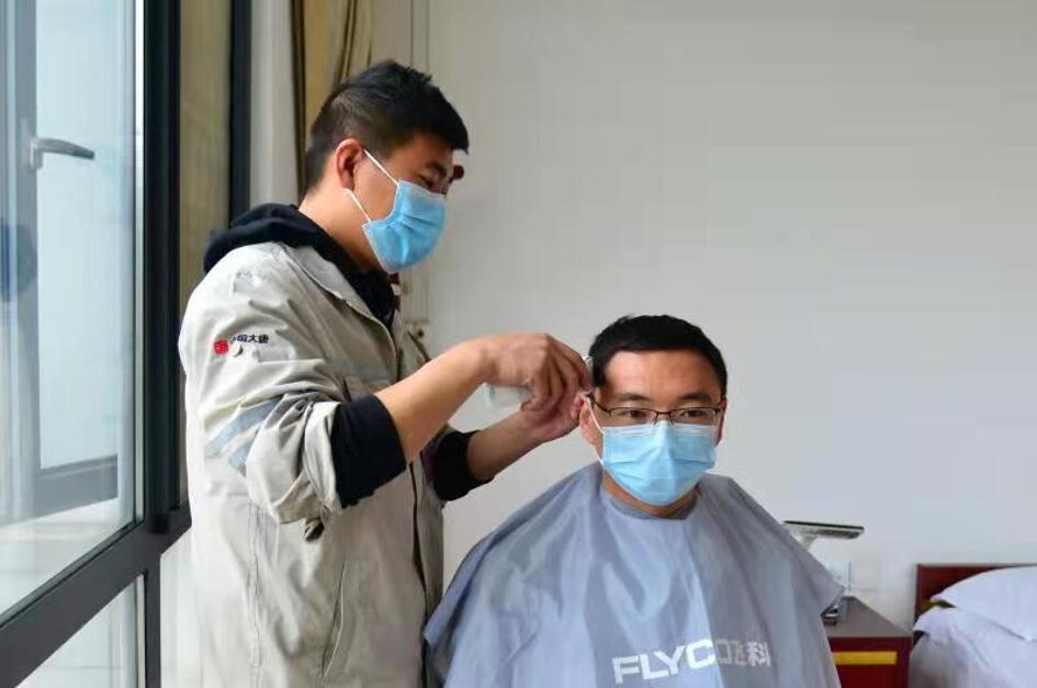 為堅(jiān)守崗位的職工理發(fā)(付山/攝)